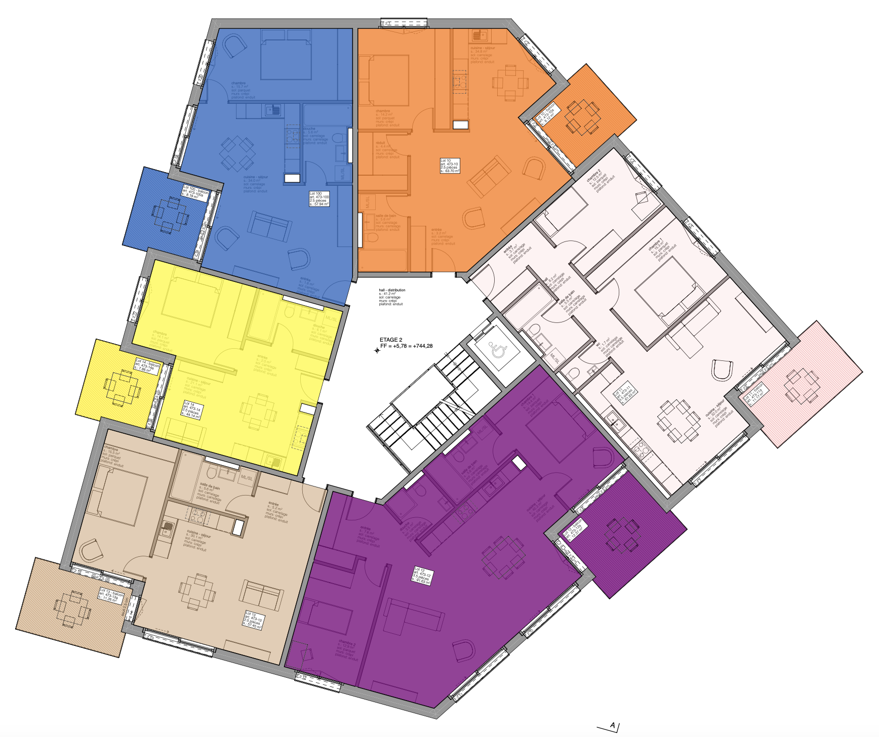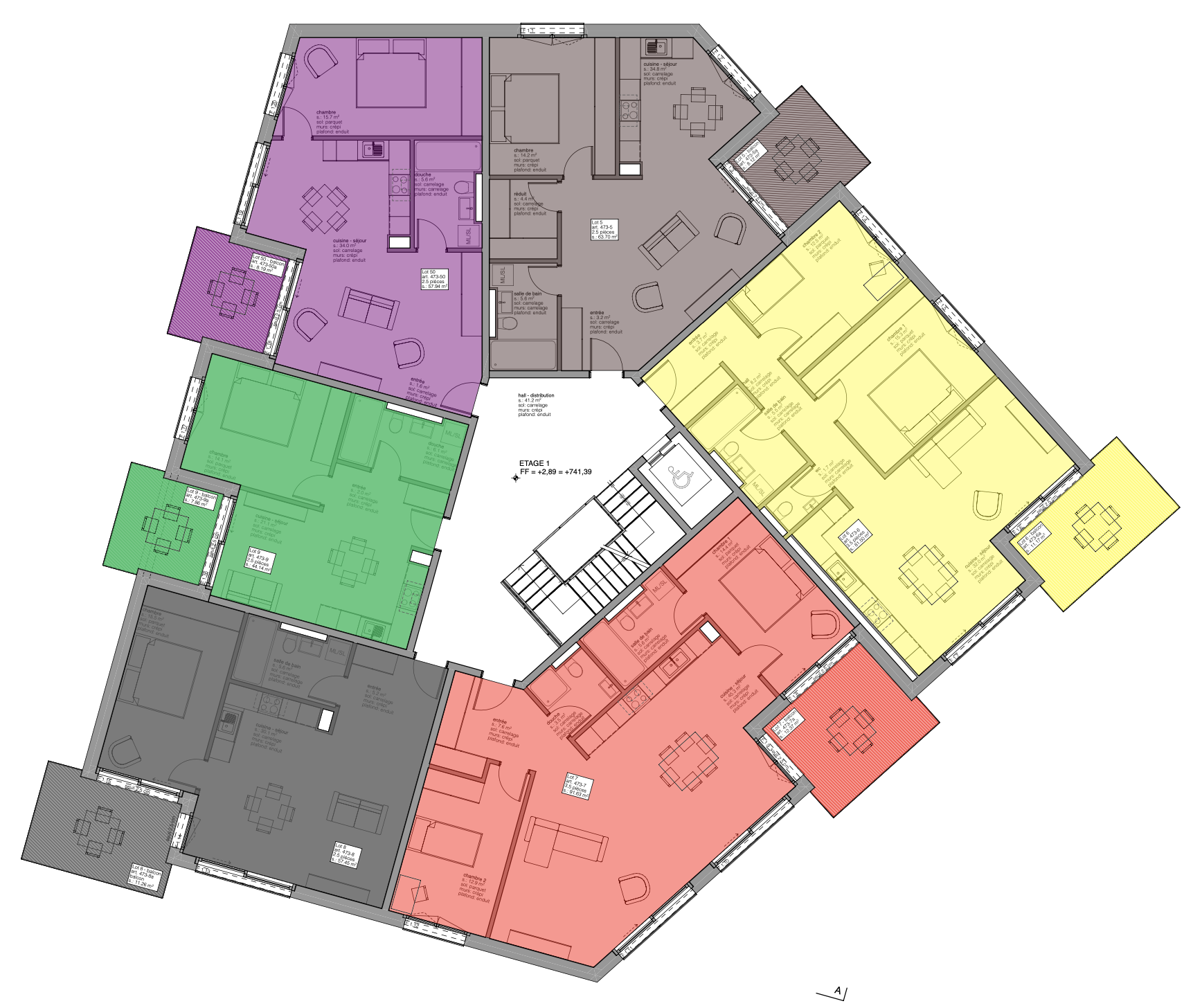 1 appartement au 2ème étage :