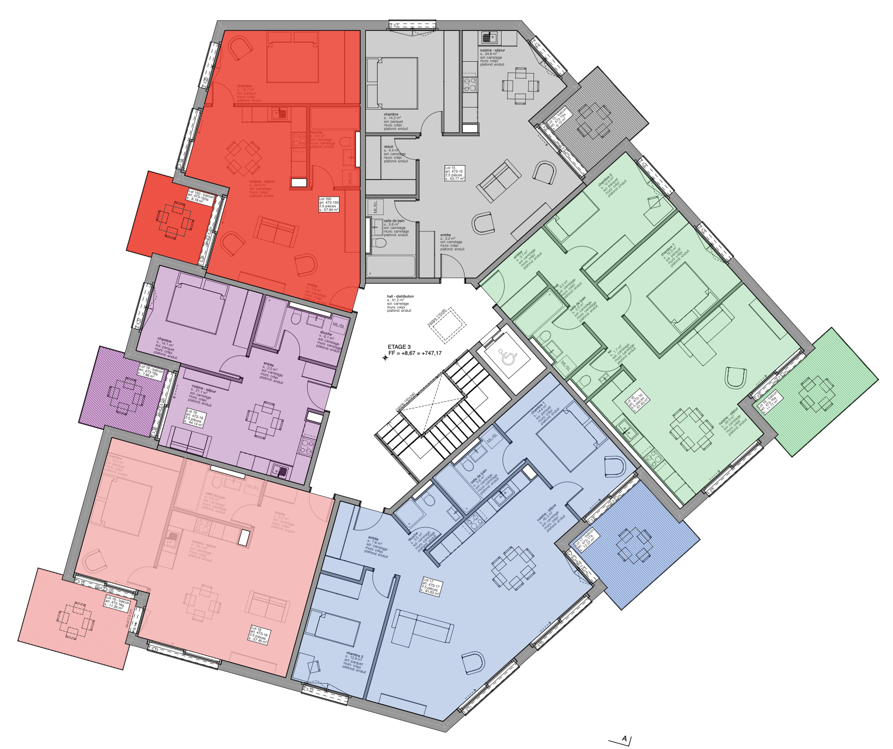 Lot 5 : 2.5 pièces ≃64m2, avec balcon de 8.5m2 - 1 cave CHF 509'225.-